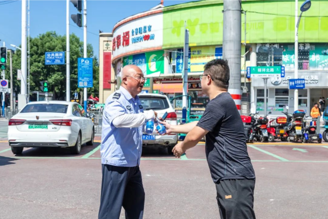 一瓶瓶愛心冰水 傳遞清涼正能量 讓奮戰(zhàn)在高溫下的戶外工作者 喝點(diǎn)冰涼爽口的飲品歇歇腳 感受這份清涼的關(guān)懷